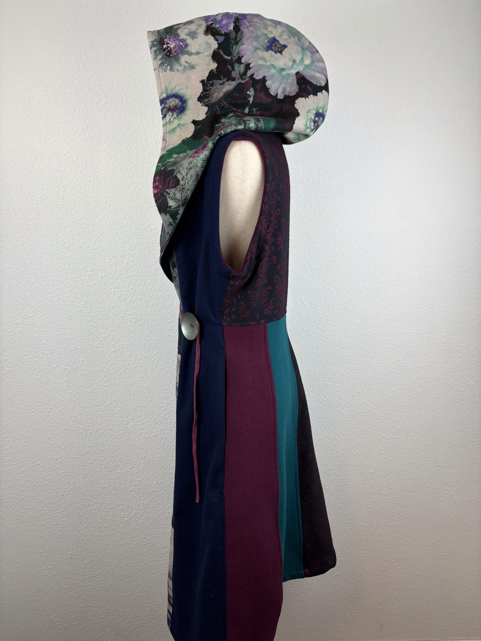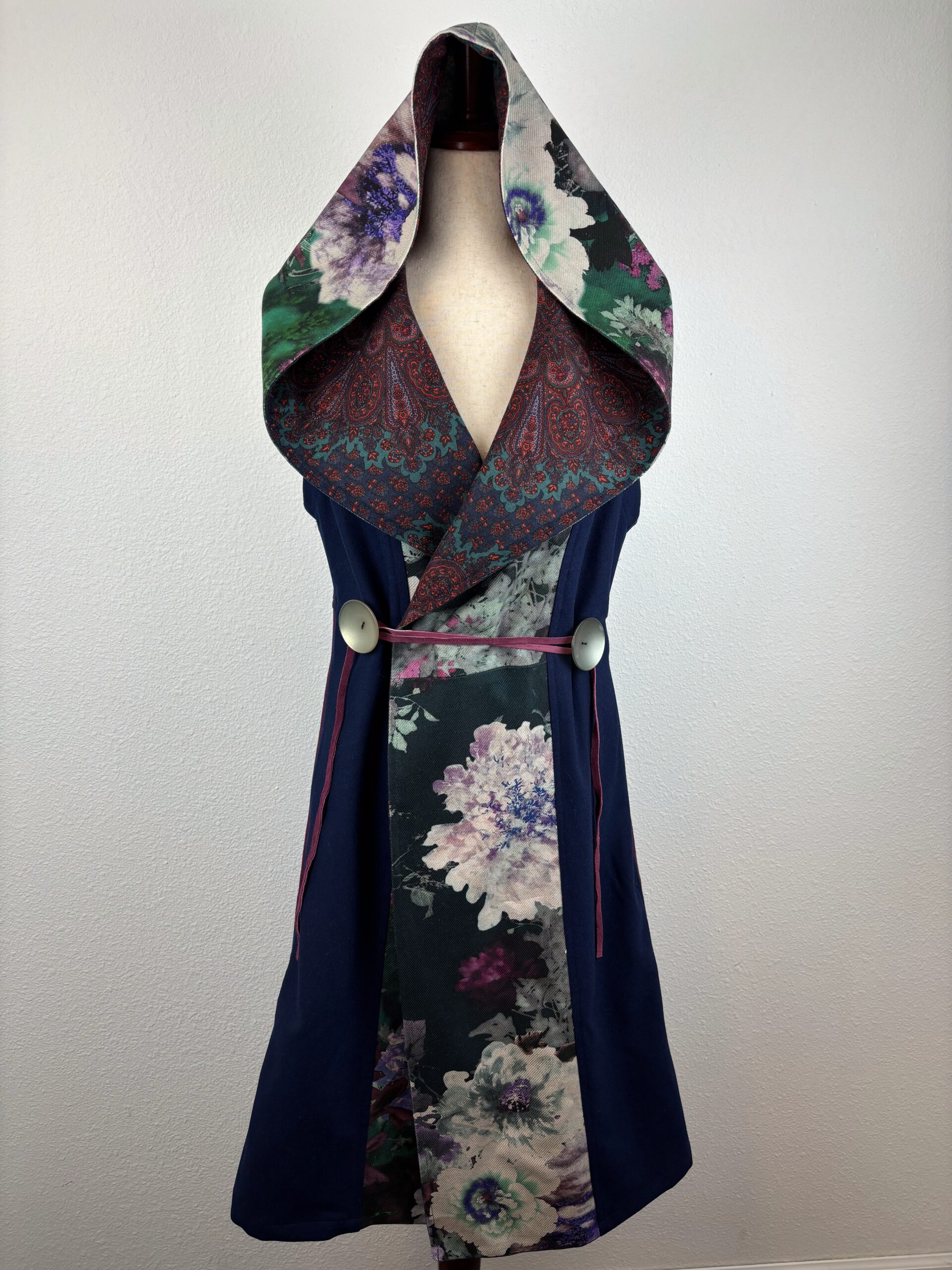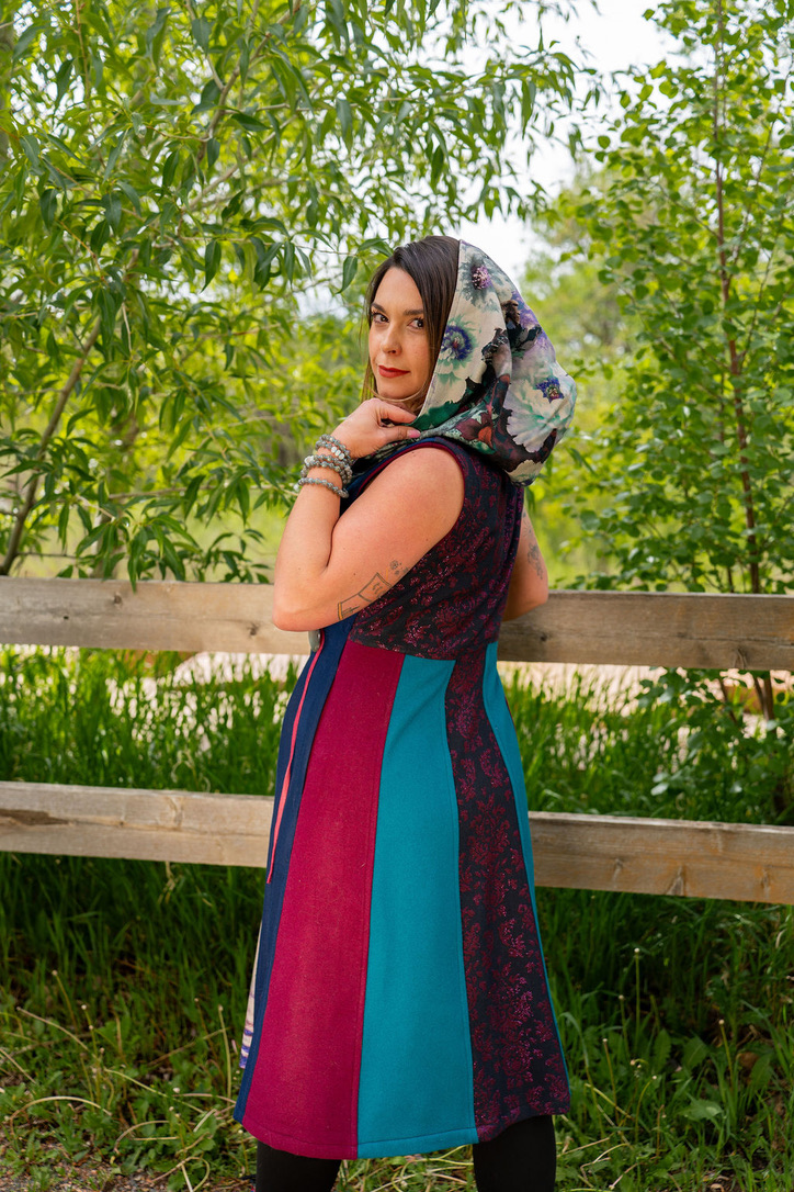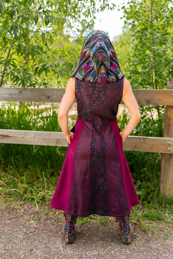 Manifested from a vision held for over 7 years, this ceremonial cloak is handmade and designed to evoke a feeling of sacred, grounded presence. Made from high quality fabrics including wool, cashmere, and handwoven Guatemalan textiles, each cloak is unique and one-of-a-kind. It has a large hood, deep pockets, and adjustable leather ties. Contact us for a custom order!